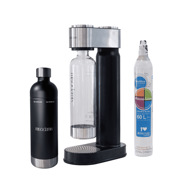 GASIFICA TU AGUA DESDE CASA, MÁQUINA GASIFICADORA DE AGUA MISODAMIX ORIGEN. + BOTELLA ADICIONAL DE ACERO INOXIDABLE 1 LITRO.